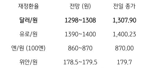 오늘의 달러/원 환율 1,300~1,310원 전망