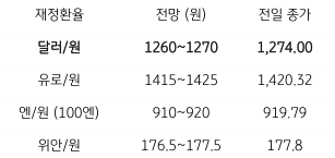 오늘의 달러/원 환율 1,270~1,280원 전망