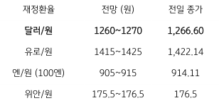 오늘의 달러/원 환율 1,260~1,270원 전망
