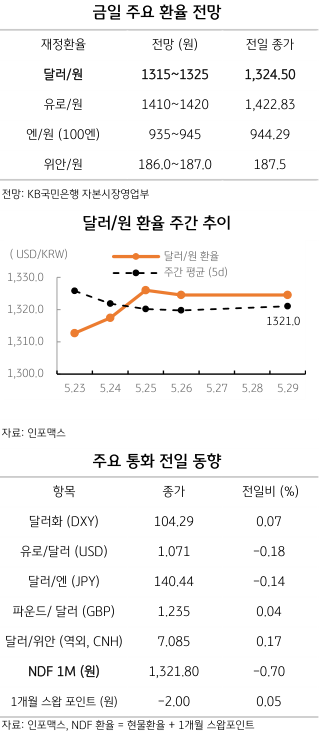 오늘의 달러/원 환율 1,315~1,325원 전망