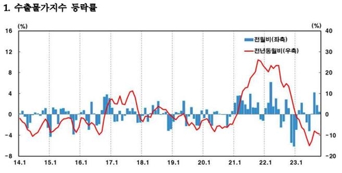 한편 전년 동월 대비 수출입물가는 지난해 고유가·고환율 기저효과로 모두 급락세를 이어갔다.
