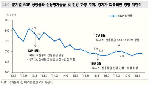 최설화 메리츠증권 연구원은 "무디스가 지적한 문제인 부동산 리스크 등은 이미 금융시장에서 인지했던 문제"라며 "지난 2년간 주가와 크레디트 시장에 상당 부분 반영돼 있다"고 설명했다.