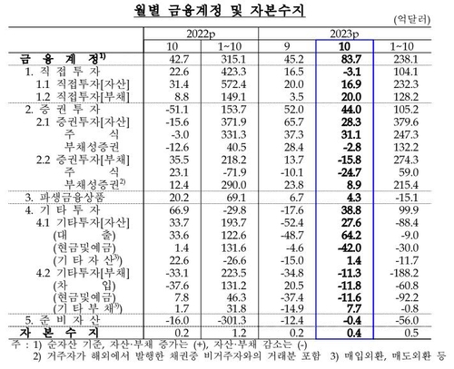 구체적으로 살펴보면 직접 투자 순자산이 3억1천만 달러 줄었다.