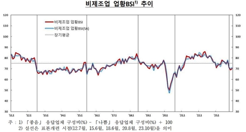 제조업과 비제조업을 종합한 전 산업 업황 BSI는 12월 70으로 전월과 같았다.