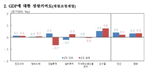 4분기 성장률에 대한 민간과 정부의 기여도는 각각 0.2%포인트(p), 0.3%p로 분석됐다.