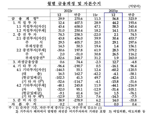 지난해 12월 금융계정 순자산은 56억8천만 달러 늘었다.