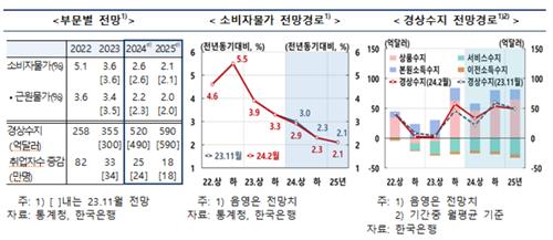 한은은 "민간소비는 임금 상승 및 물가 둔화로 가계 실질소득이 개선됨에 따라 완만한 회복세를 나타낼 것"이라며 "다만, 가계의 원리금 상환 부담은 소비 여력의 개선 속도를 늦추는 요인으로 작용할 것"이라고 내다봤다.