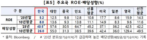지난 10년간 한국 주식시장 자기자본이익률(ROE)은 8.0%로 미국(14.9%), 일본(8.3%), 영국(9.6%), 중국(9.3%) 등 주요국보다 낮은 수준이다.