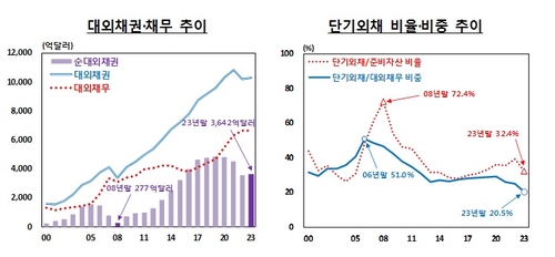 만기 1년 이내 단기외채가 303억 달러 급감했고, 장기외채는 287억 달러 증가했다.