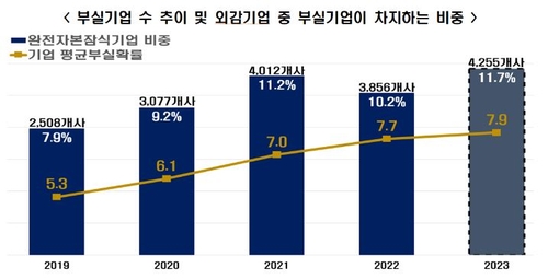 한국경제인협회가 기업부실예측모형이라는 것을 통해서 분석한 내용입니다. 완전자본잠식 기업의 비중이 지난 2022년 10.3%에서 작년에 11.7%로 오른 건데요. 11.7%라는 수치는 최근 5년 만에 가장 높은 수준이었습니다.