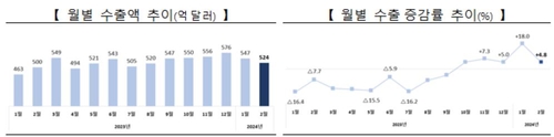 (세종=연합인포맥스) 이효지 기자 = 2월 수출이 반도체와 대중 수출 호조에 힘입어 예상을 웃도는 증가세를 나타냈다.