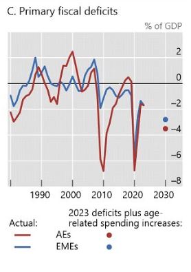 이렇게 부양비가 상승하면 저축이 줄어들게 되므로 중립금리의 상승 요인이 됩니다. 또, 팬데믹으로 나라별로 재정 적자가 크게 늘어나고 있는데요.