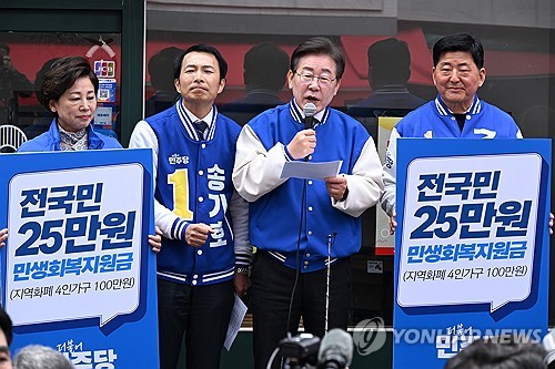 민주당은 이번 총선을 앞두고 1인당 25만원 민생회복지원금 지급을 공약으로 내세웠다. 자체 추계에 따르면 필요한 재원은 13조원이다.