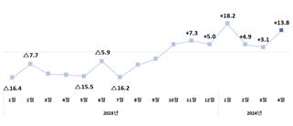 산업통상자원부는 4월 통관기준 수출이 전년 동월보다 13.8% 늘어난 562억6천만달러로 집계됐다고 1일 밝혔다.