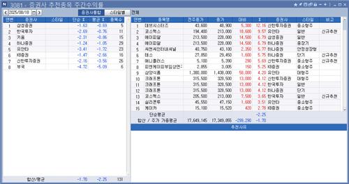 추천종목의 누적 등락률은 인포맥스 화면 '증권사 추천종목 현황(화면번호 3080)'을 통해 실시간으로 확인할 수 있다.