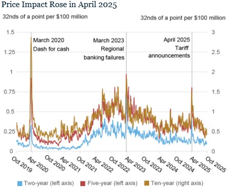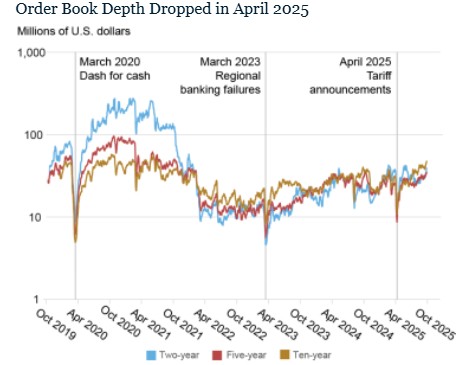 연은은 12일(현지시간) 자사 블로그 게시물 '2025년 국채시장 유동성은 어땠을까?'라는 글을 통해 시장 유동성을 매수·매도 스프레드, 주문장 깊이(order book depth), 가격 충격 등 세 가지 지표로 진단했다.