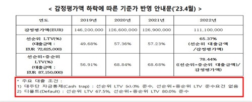 아울러 펀드 판매 이후 사후관리의 문제점에 대한 지적도 나왔다. 펀드가 2019년에 설정됐음에도, 중순위 대출의 존재와 LTV 관련 EOD 요건, 기초자산 강제 매각 가능성 등 상세한 위험 고지는 이로부터 4년이 지난 2023년에서야 안내가 진행됐다.