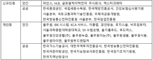 이밖에도 신규 인증 부문 우수 기업엔 한국해양진흥공사와 국립세종수목원이, 재인증 부문에서 IBK시스템, KCA서비스, 한국이콜랩, 한국어촌어항공단, 한국방송통신전파진흥원, 대한무역투자진흥공사가 이름을 올렸다.