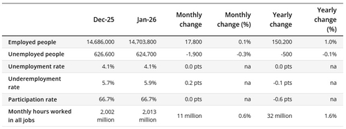 19일 호주 통계청(ABS)에 따르면 1월 실업률은 계절조정 기준 4.1%로 집계됐다.