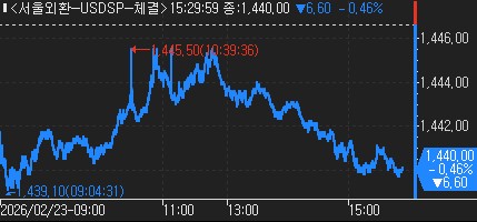 장중 고점은 1,445.50원, 저점은 1,439.10원으로 장중 변동 폭은 6.40원이다.