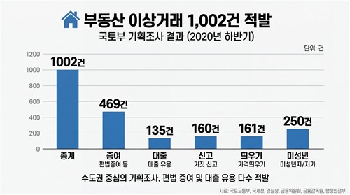 국토부가 지난해 하반기 실시한 부동산 이상 거래 기획조사에는 총 1천2건의 위법 의심 거래가 적발됐다.