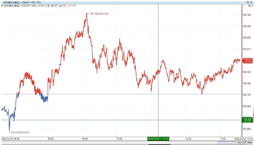 다만, 달러-엔은 일중 고점인 156.890엔을 터치한 뒤로 상단이 막히면서 상승 폭을 보합권까지 축소했다.
