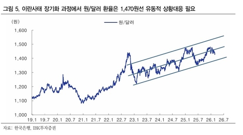 다만 사태가 장기화하는 과정에서 1달러당 1,500원 선을 넘어갈 가능성이 높고 2023년 이후 형성된 추세대 상단인 1,550원 선을 테스트할 전망이라고 말했다.