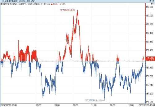 (서울=연합인포맥스) 박지은 기자 = 3일 도쿄환시에서 달러-엔 환율은 157엔대에서 등락했다.