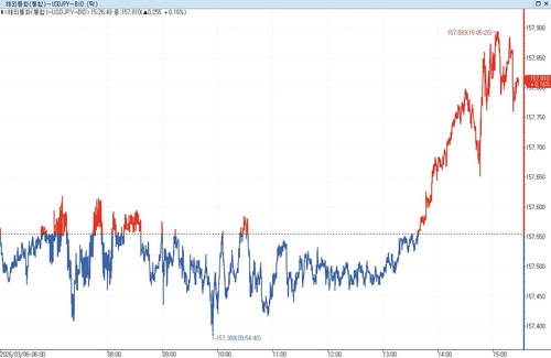 한편, 달러-엔 환율은 오후 3시25분 현재 전일보다 0.16% 상승한 157.810엔에 거래됐다.