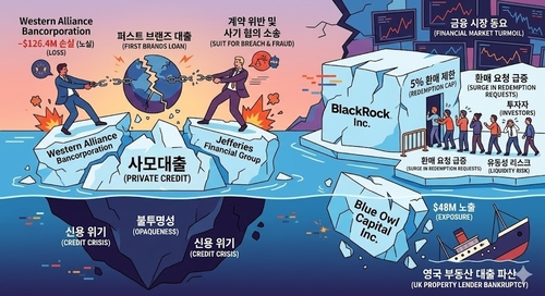(서울=연합인포맥스) 이장원 선임기자 = 사모대출 시장의 신용 불안이 확산하며 글로벌 금융사들의 주가가 급락했다.