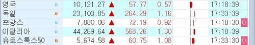 영국 FTSE100 지수는 10,121.27로 0.57% 상승했고, 독일 DAX30 지수는 23,103.85로 1.16% 뛰었다.