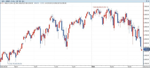 연합인포맥스 지수선물 통합화면(화면번호 6520)에 따르면 한국 시각으로 오전 10시3분 기준 E-미니 S&P500 지수 선물은 전장 대비 0.53% 하락한 6,524.50에 거래됐다.
