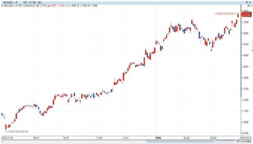 중동 전쟁 격화로 인플레이션 우려가 커진 가운데, 일본은행(BOJ)의 조기 금리 인상 전망이 강화한 점이 영향을 줬다.