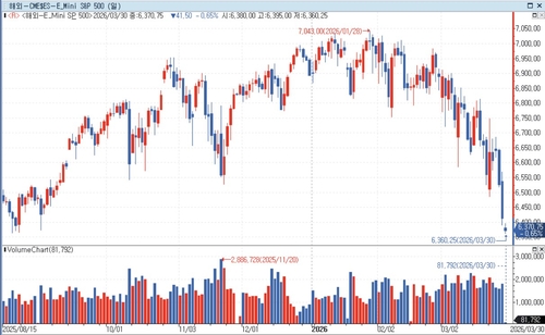 연합인포맥스 지수선물 통합화면(화면번호 6520)에 따르면 한국 시각으로 오전 10시 기준 E-미니 S&P500 지수 선물은 전장 대비 0.65% 하락한 6,370.75에 거래됐다.