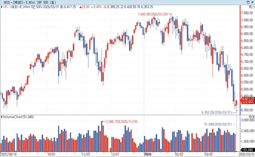 연합인포맥스 지수선물 통합화면(화면번호 6520)에 따르면 한국 시각으로 오전 9시52분 기준 E-미니 S&P500 지수 선물은 전장 대비 0.45% 상승한 6,417.25에 거래됐다.