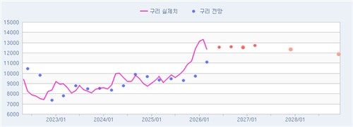 2027년 1분기엔 반등해 톤당 12,717.78달러에 거래될 것으로 집계됐다.