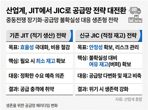 석화업계는 나프타 도입선을 아프리카와 북미로 급히 넓혔고, 자동차와 가전 업계는 핵심 부품 재고를 평시 대비 늘려서 확보하며 공급망 붕괴에 맞서고 있다. 단순한 비용 절감을 넘어 불확실성을 상수로 둔 생존형 공급망 구축이 경영의 최우선 과제가 된 결과다.