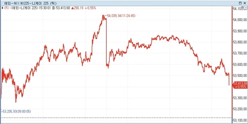 연합인포맥스 세계주가지수(6511)에 따르면 닛케이225지수는 전 거래일 대비 290.19포인트(0.55%) 상승한 53,413.68에 장을 마쳤다.