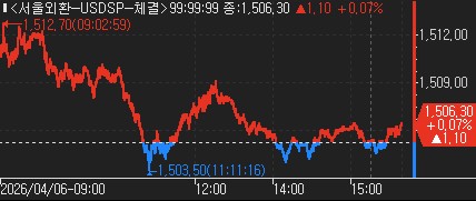 장중 고점은 1,512.70원, 저점은 1,503.50원으로 장중 변동 폭은 9.20원이다.