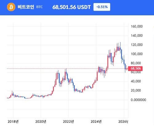 7일 연합인포맥스 크립토 종합화면(화면번호 2550)에 따르면, 오후 3시14분 현재 전날보다 0.51% 내린 6만8천501.56 달러에 거래됐다.