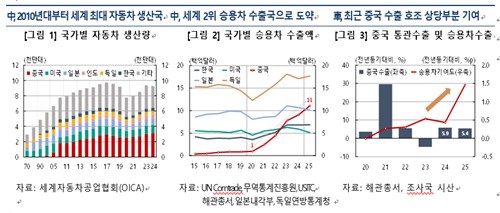 이같은 내수부진과 미국 관세장벽에 따른 충격을 극복하기 위해 중국 정부는 대외 수출확대를 도모할 가능성이 높다고 진단했다. 중국 자동차의 부상은 독일, 일본, 우리나라 등 전통적 자동차 강국에게 심각한 위협으로 다가오고 있다는 지적이다.