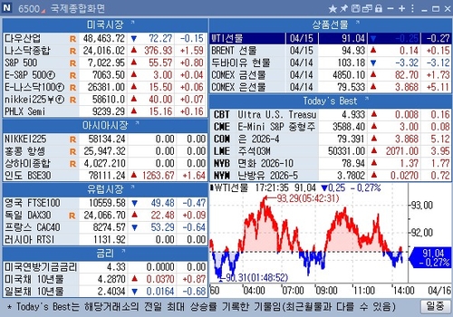 -WTI : 전장 대비 0.01달러(0.01%) 오른 배럴당 91.29달러