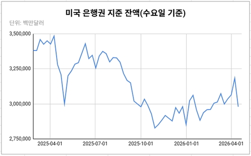 연준에 따르면, 15일 기준 지준 잔액은 약 2조9천802억달러로 전주대비 2천33억달러가량 쪼그라든 것으로 나타났다. 지난 2월 중순 이후 최저치다.