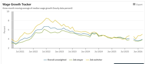 애틀랜타 연은의 임금 추적기에 따르면 2022년 7월 이직자의 임금 증가율은 8.5% 수준까지 치솟기도 했다. 지난 3월 이직자의 임금 증가율이 5.0%로 점차 오르는 양상이지만 과거와는 차이가 크다.