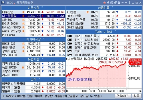 △뉴욕증시의 3대 주가지수는 강세 마감. 도널드 트럼프 미국 대통령이 이란 전쟁의 휴전 만료 직전 휴전을 연장하면서 낙관론이 증시를 지탱.