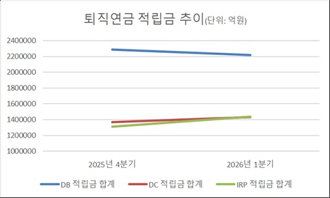 반면 DC형과 IRP 적립금은 각각 143조원과 144조원으로 같은 기간 6조2천억원(4.5%)과 12조9천억원(9.8%) 늘었다.