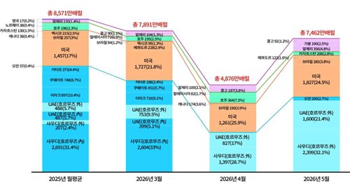 강 실장은 이날 오후 청와대 현안브리핑에서 이같이 밝히며 "5월 중에 사우디에서 2천399만 배럴, UA에서 1천600만 배럴의 호르무즈 해협과 무관한 대체 항로로 통해 도입하기로 확정한 것은 정부와 민간이 합심해 발빠르게 대응한 성과"라고 평가했다.